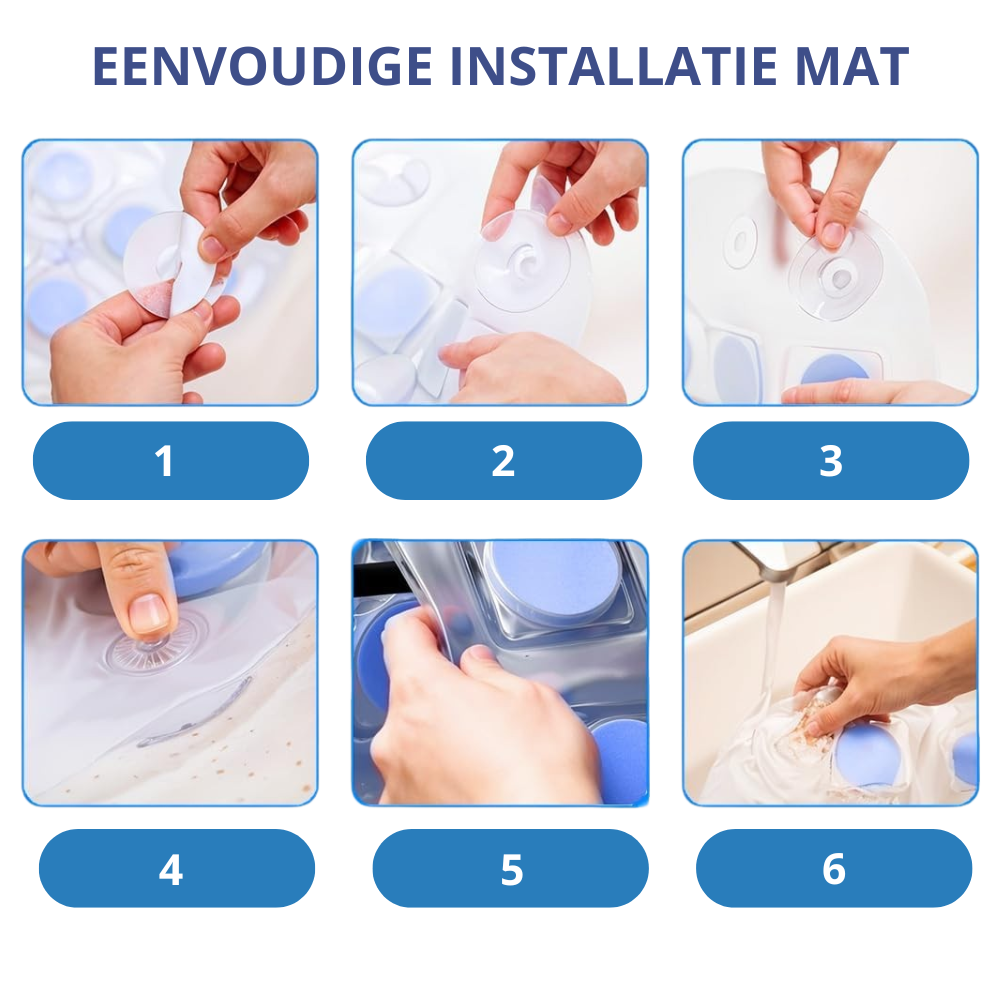 Breng 4 ronde plaatjes aan op elke zuignap op de hoeken van de mat.