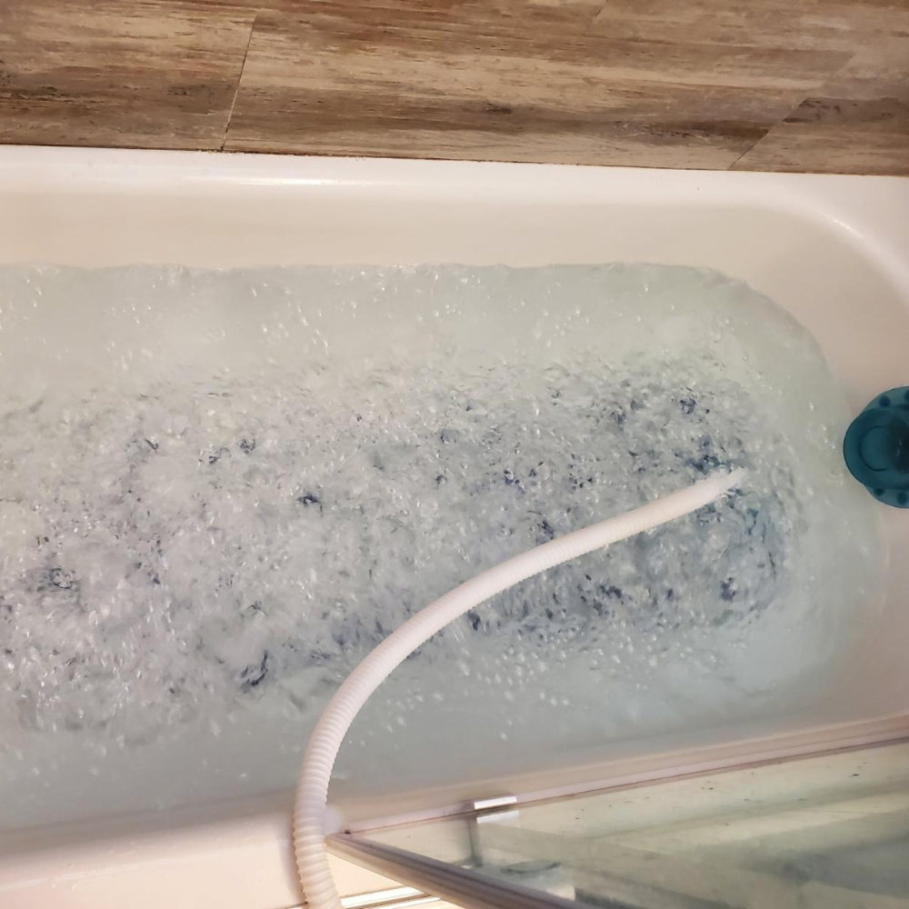 Ja, zolang het bad stevig genoeg is en warm water aankan, werkt de mat prima.